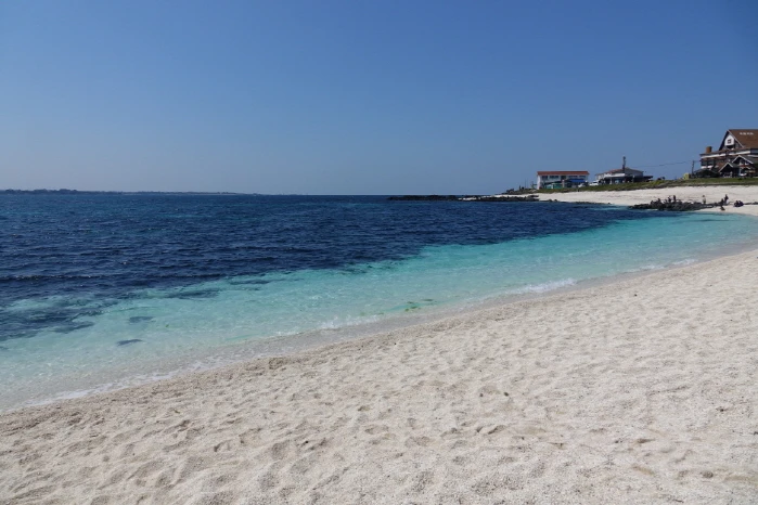 에메랄드빛으로 부서지는 햇살 아래 하얗다 못해 푸른빛이 감도는 서빈백사해변. 우도 서쪽의 하얀모래해변이라 하여 서빈백사로 불린다. 이곳의 모래는 해양 조류 중 하나인 홍조가 해안으로 쓸려와 퇴적된 것으로, 홍조단괴 산호해변으로도 불린다. 수심에 따라 바다 빛깔이 달라 남태평양이나 지중해의 어느 바다와 비교해도 손색이 없다. (자료출처 : 비짓제주 - https://www.visitjeju.net/kr) 위치 : 펜션에서 약 0.4km, 도보 약 2분 거리